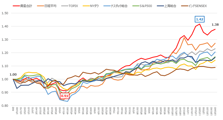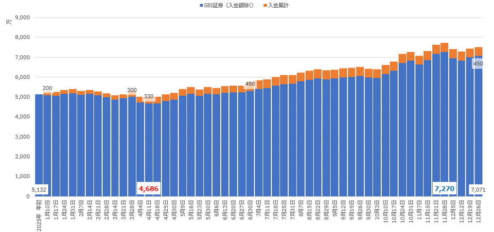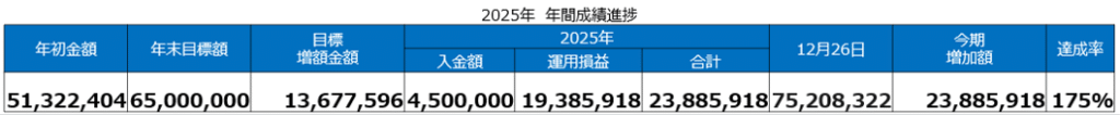 2025年は、年間2,350万円増(運用益1,900円+入金450万円)と過去最高の増益になりました。