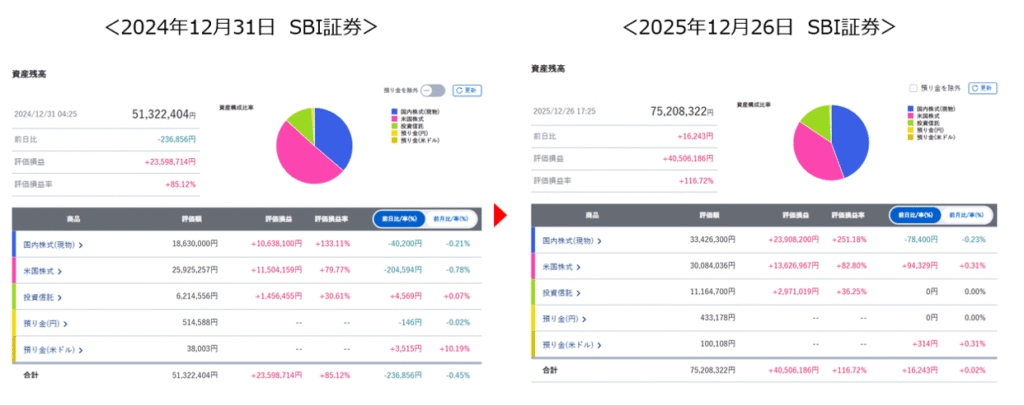 【FP2級/AFP登録】=2025年最終結果発表=資産は過去最高の2,350万円増(運用益1,900万円+入金450万円)で7,500万円を達成!2026年は「目指せ!8,500万円への道」をテーマに「リバランス」と「暴落時の対策」にも挑戦予定!