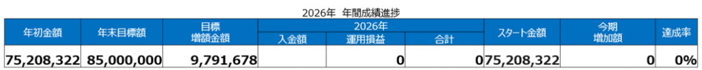 2026年は、7,500万円からスタートし、「目指せ!8,500万円への道」をテーマに運用をしていきたいと思っています。